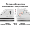 Descripción: En el día más especial de tu vida, cada detalle cuenta, ¡incluso tus zapatos! Descubre nuestra exclusiva colección de zapatos caña alta de lona personalizados para bodas, diseñados para mujeres que desean destacar con un toque de distinción en su gran día. Estos zapatos no solo ofrecen comodidad y estilo, sino que también te permiten agregar un toque personal con tu nombre y un mensaje especial.