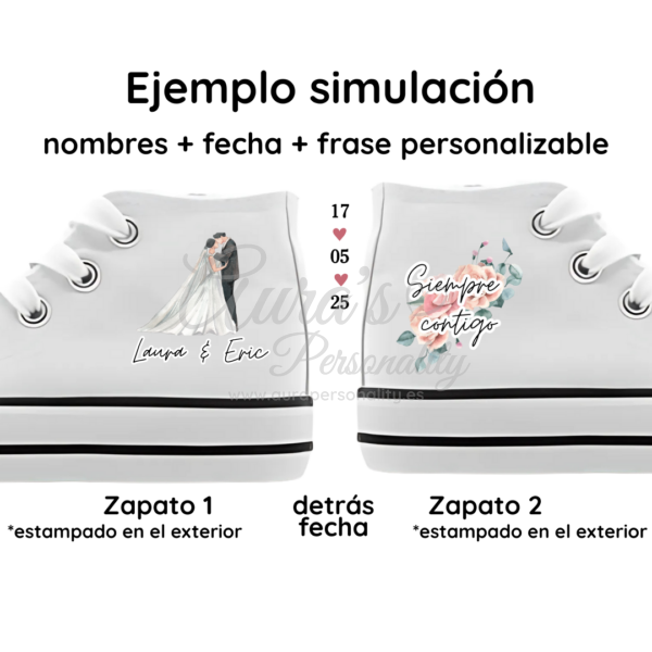 💖 Elige tu modelo con o sin plataforma (tallas 36-41) y personalízalas con nombres, fecha y flores.